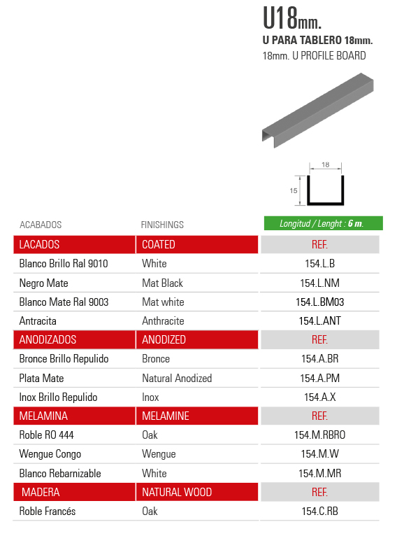 Inicio / Productos / SISTEMAS DE PUERTAS CORREDERAS PARA ARMARIOS / COMPLEMENTOS COMUNES / U PARA TABLERO 18mm