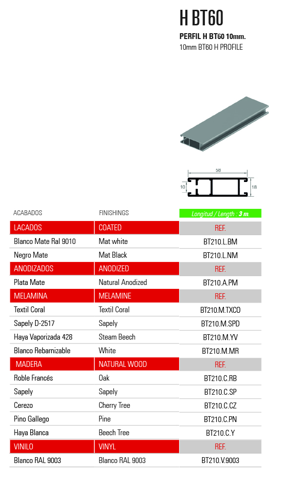 PERFIL H BT60 10mm.